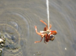えさを目の前に吊るすとみんな食いついてくれる、なんて警戒心のないザリガニたち・・・。