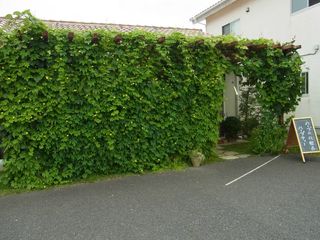 さて、鈴木ハーブの夏といえば、恒例になりつつある緑のカーテン![]()