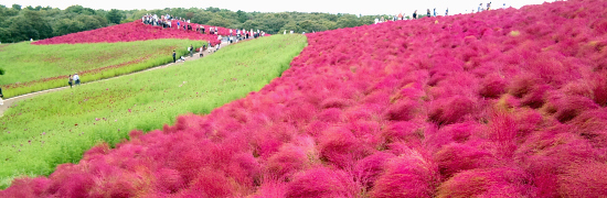 コスモスの他にも海が見えるスポットやハーブ園など、公園内は見どころ盛り沢山なのですが、なんといっても今回は、コキアの紅葉が見事でした。