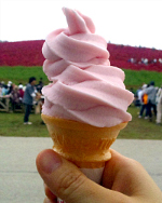 最後はコキアの丘を眺めながら、コキアソフトクリーム(クランベリー味)で締め。