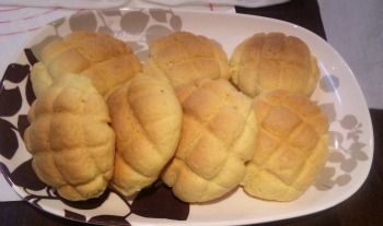 お友達の家の オーブンと 四苦八苦しながら、1回目の完成品は、“ウーン” でしたが、2回、3回と作るうちに、見た目もメロンパンらしいものに出来上がりました。