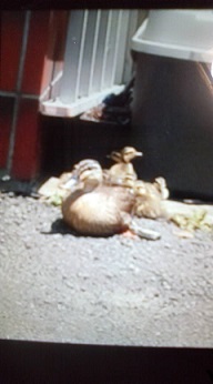 なんと、カルガモの親子がガーガーお尻をフルフリ庭に入ってきました。