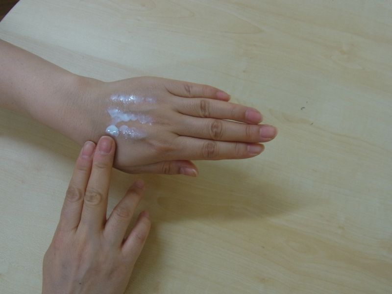 こうすると、お肌をこすらないので、負担をかけずに塗れます。