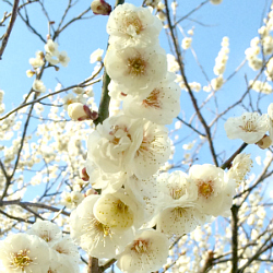 見事に咲いた花に顔を近づけると、甘いような酸っぱいような、さわやかな梅の香りがしました。