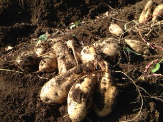 赤紫のさつまいもの予定が、干し芋用の白色でした。