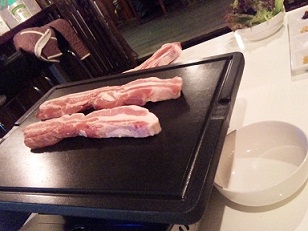 ここは、「ローズポークの極厚サムギョプサルセット」と「おいしいビール」を堪能。