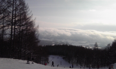 別にスキーで降りてこなくていいんだわ、そのままリフトに乗って降りてこようっとbleah