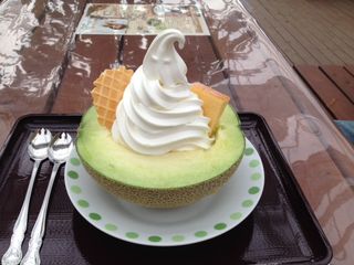 メロンの中にソフトクリームが乗っているんです。