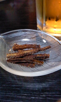 お通しに「うなぎの骨の唐揚げ」
