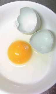 けっして青く色を付けたのではなく、卵の殻の色を決める色素がアローカナは「水色」なんですって![]()