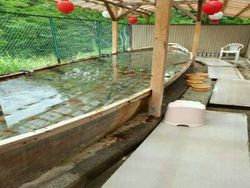 フェンス(断崖)の向こうは鬼怒川の清流が…