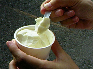 「日本初!」というのぼりに惹かれて、買ってみました。「米発酵アイス」!